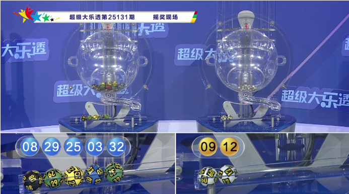 上期开奖:体彩大乐透第2025131期开奖号码为:03 08 25 29 32 + 09 12。