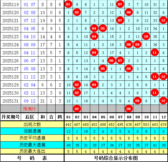 第2025132期9+3保举:06 08 12 16 26 29 30 31 33 + 02 05 08