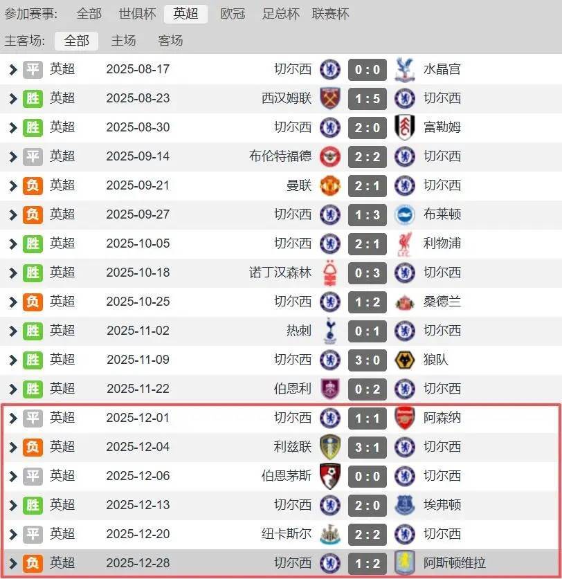 英超12轮战罢,切尔西还位居第二,仅逾期榜首阿森纳6分,越过曼城1分。然则参预圣诞月(12月),切尔西的英超联赛得益遭受滑铁卢,近6轮英超联赛仅获取1胜,具体战绩为1胜3平3负,这使得切尔西英超排行下滑至第五,与第六名曼联同分,还逾期低谷时分的利物浦3分,近期战况实在耳不忍闻。
