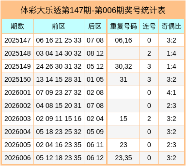 体彩大乐透第26006期奖号为:05、12、18、23、35 + 06、12,前区奇偶比为3:2,连码未出现,重号开出23,35。